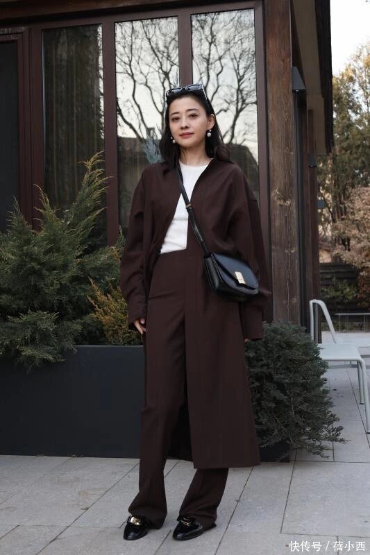 AG轮盘梅婷身上的这套棕色休闲套装真的是非常帅气,而这两年卡其色的人气也算是到达了一个新高度,上升以后充满着优雅的复古感,还被人亲切地称之为是美拉德系。这种厚重的棕色是非常显白的,而且搭配休闲风格也很自然,可以把松弛的感觉拉满。
