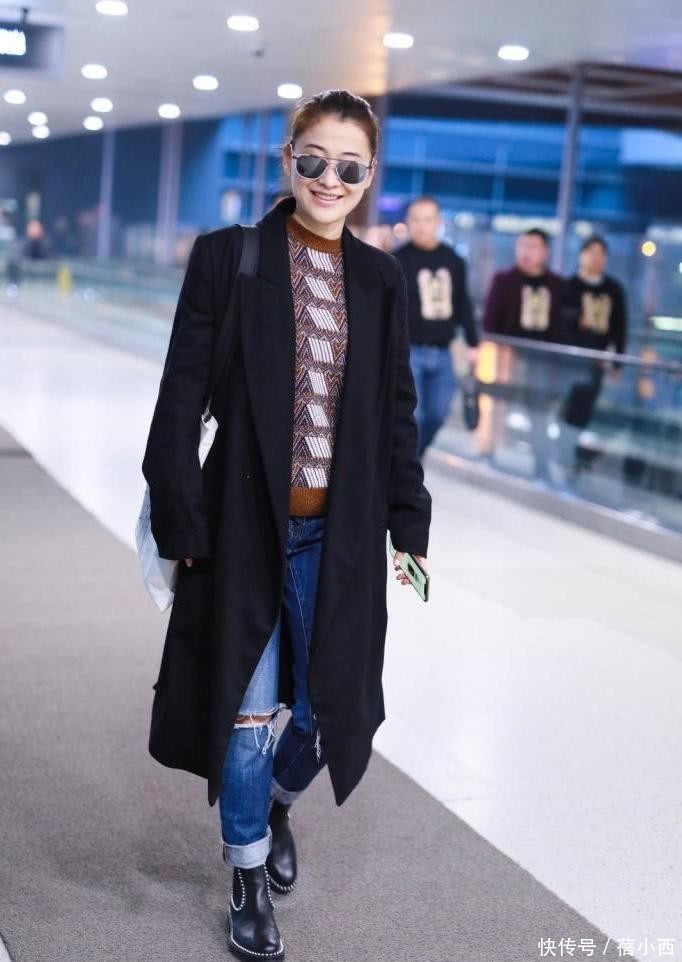 就比如梅婷穿这件黑色大衣,就在里面搭配了相对于比较厚重的毛衣,可是在黑色大衣的衬托下,整个人就显得又瘦又挺拔,随便搭配一条牛仔裤都很有女神气息呢。